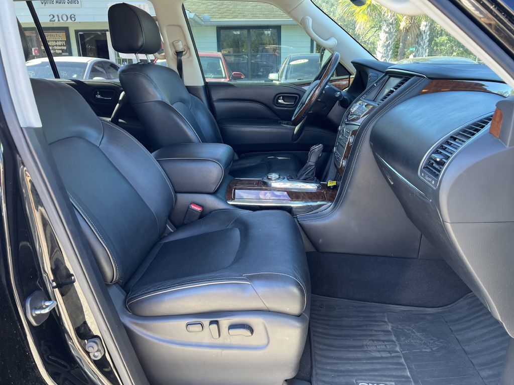 Buckle up for a truly luxurious ride with this sleek 2018 Infiniti QX80! This black beauty is the epitome of style and sophistication, perfect for those who crave high-end performance and top-notch comfort. Picture yourself cruising down the highway, turning heads with the QX80's bold and commanding presence. With its spacious interior, you'll feel like royalty as you sink into the plush leather seats and enjoy the premium sound system that will have you singing your heart out. Glide effortlessly through city streets and rugged terrains alike, thanks to the powerful engine and smooth handling of this top-tier SUV. Whether you're running errands or embarking on a road trip adventure, the QX80's reliable performance will never steer you wrong. So why settle for anything less than extraordinary? Upgrade your driving experience with this stunning Infiniti QX80 and let the good times roll!